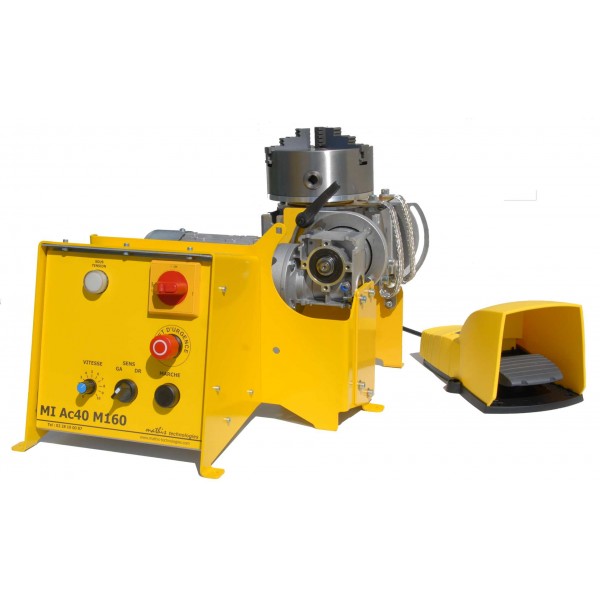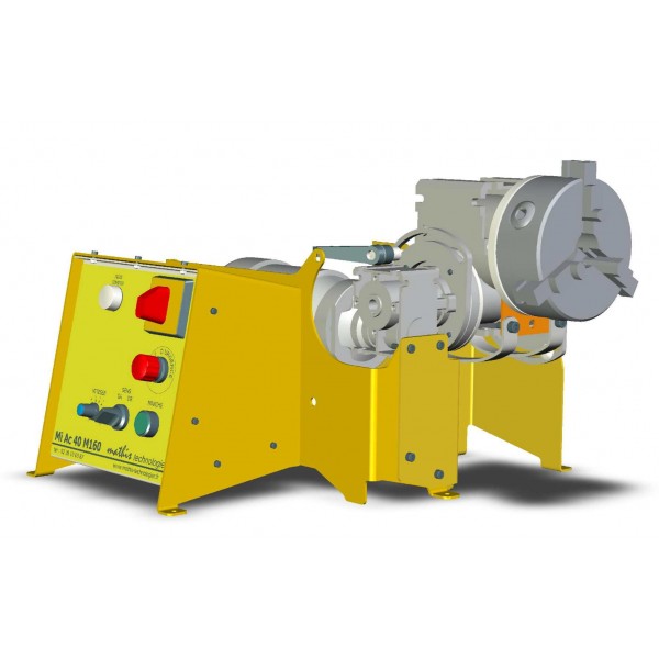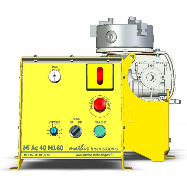 Mini positionneur de soudure de capacité 50kg à arbre creux de 40min de diamètre et mandrin de 160mm, avec entrainement du moteur par commande vectorielle.